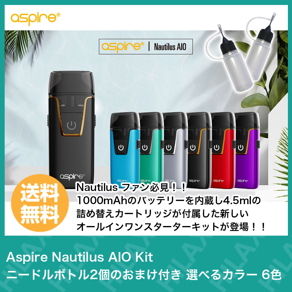 電子タバコ スターターキット 本体 Aspire Nautilus AIO POD Kit ( アスパイア ノーチラス エーアイオー ポッド キット ) ニードルボトル2個のおまけ付き 選べるカラー 6色【 VAPE 】【Hilax】