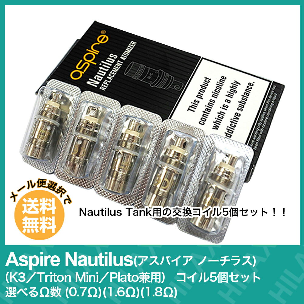 電子タバコ コイル coil Aspire Nautilus ( アスパイア ノーチラス ) ( K3 / Triton Mini / Plato / Nautilus AIO POD 兼用 ) コイル 5個セット 選べるΩ数 ( 0.7Ω ) ( 1.6Ω ) ( 1.8Ω ) 【メール便選択で送料無料】 【 VAPE 】【Hilax】