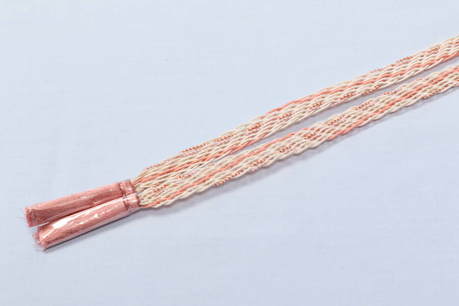 龍工房 単衣・夏用平組帯締め 平組に組まれた帯締め アミアミのメッシュのような組み方で夏らしい1本です ピンクと生成りの色合いになります 単衣や夏の着物のコーディネートにいかがでしょうか? 商品詳細 素材 正絹100% サイズ 長さ;約165センチ(フサの部分も含めて) 幅;約1.4センチ 注意点 画面上と実物では多少色具合が異なって見える場合もございます。