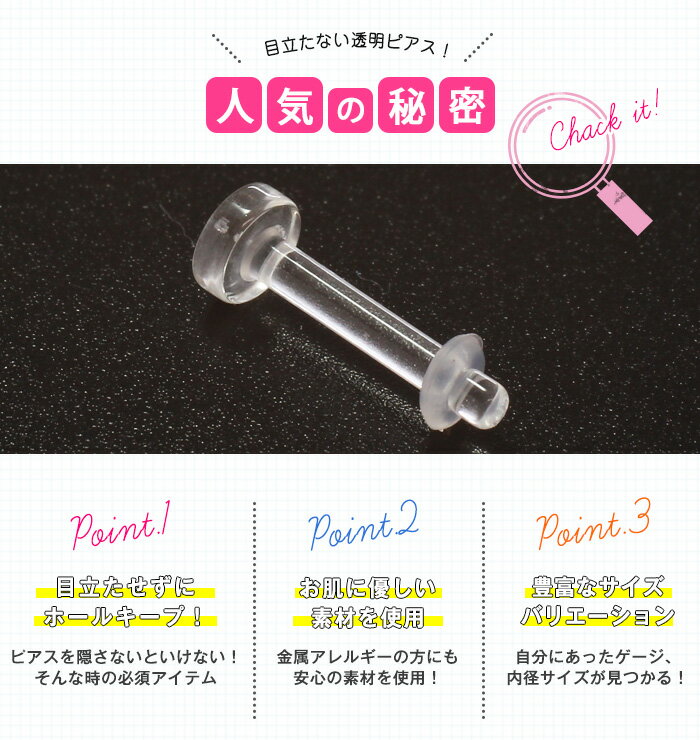 透明ピアス 16G 14G アクリル素材 リテイナー 選べる内径6〜16mm(1個売り)◆オマケ革命◆